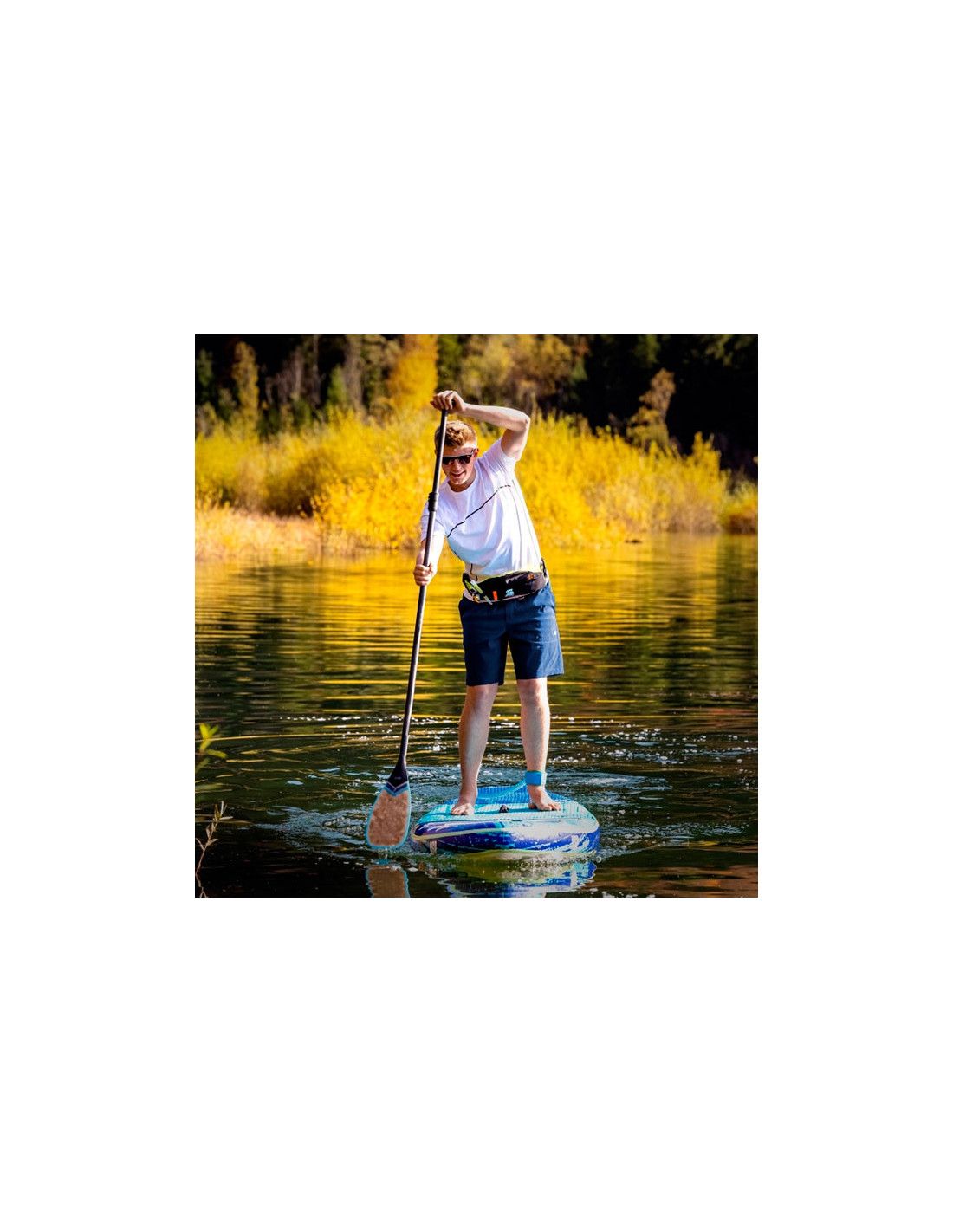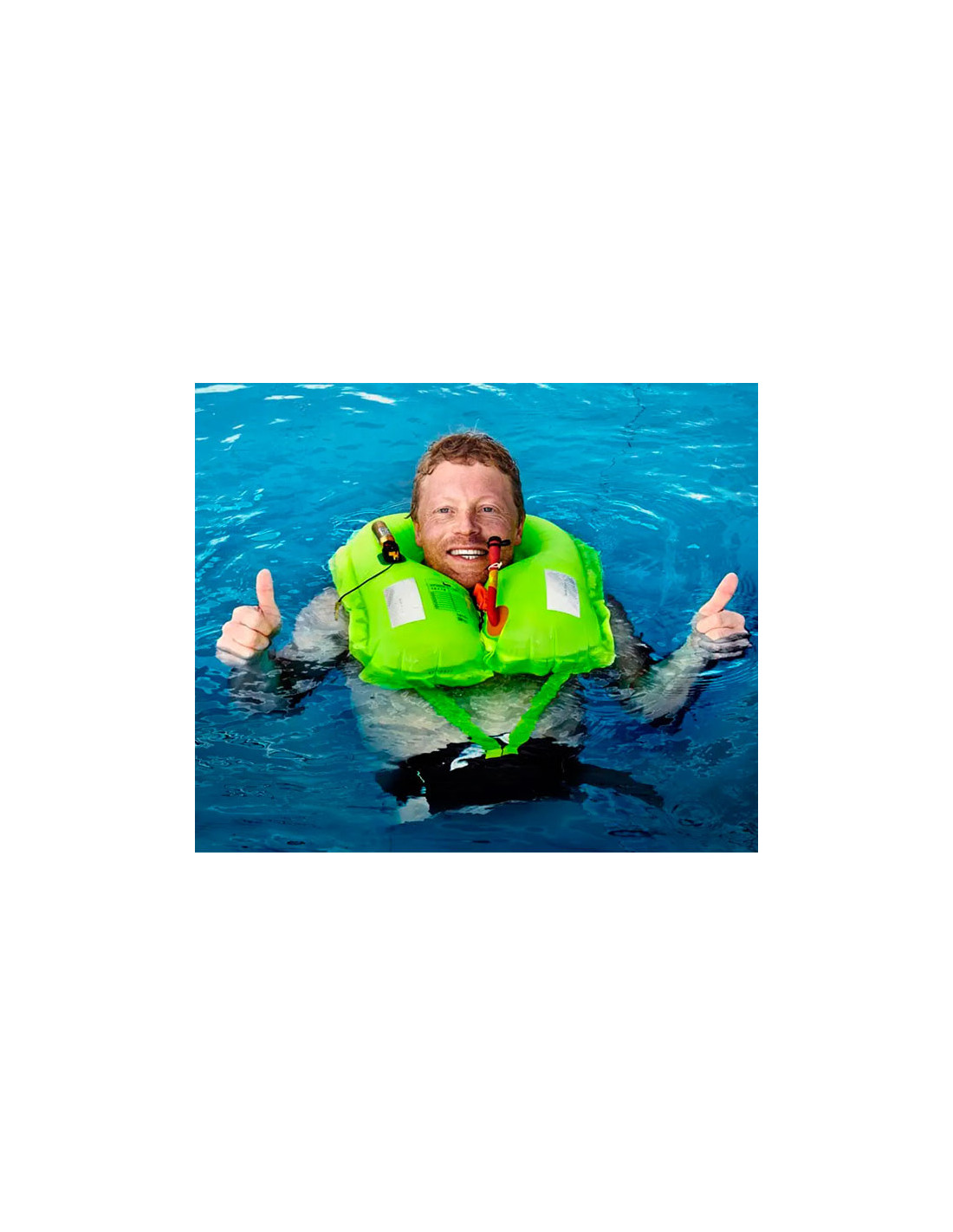 Sa conception discrète, portée à la ceinture, permet une liberté de mouvement optimale pendant l'activité sportive. En cas d'urgence, il suffit de déployer l'enveloppe gonflable et de l'enfiler par-dessus la tête pour activer la cartouche de CO2 et assurer une flottabilité rapide et efficace, maintenant la tête de la personne au-dessus de l'eau.